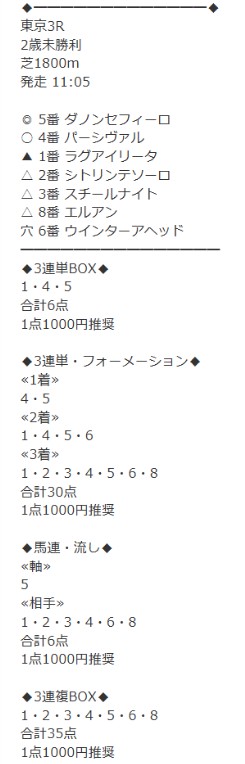 東京3Rの3馬券種的中で相変わらずの実力を見せてもらい