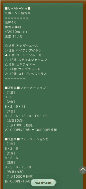 (馬券代総額6000円)