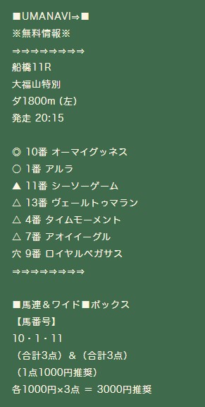 ここは中央競馬無料予想で4度の帯封的中実績ありなので