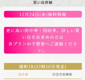 ハーレム競馬の24日(水)の無料予想浦和1Rで