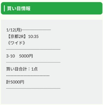 1月10日(土)の無料予想でえぶりが魅せた中山最終レースの買い目点数1点勝負