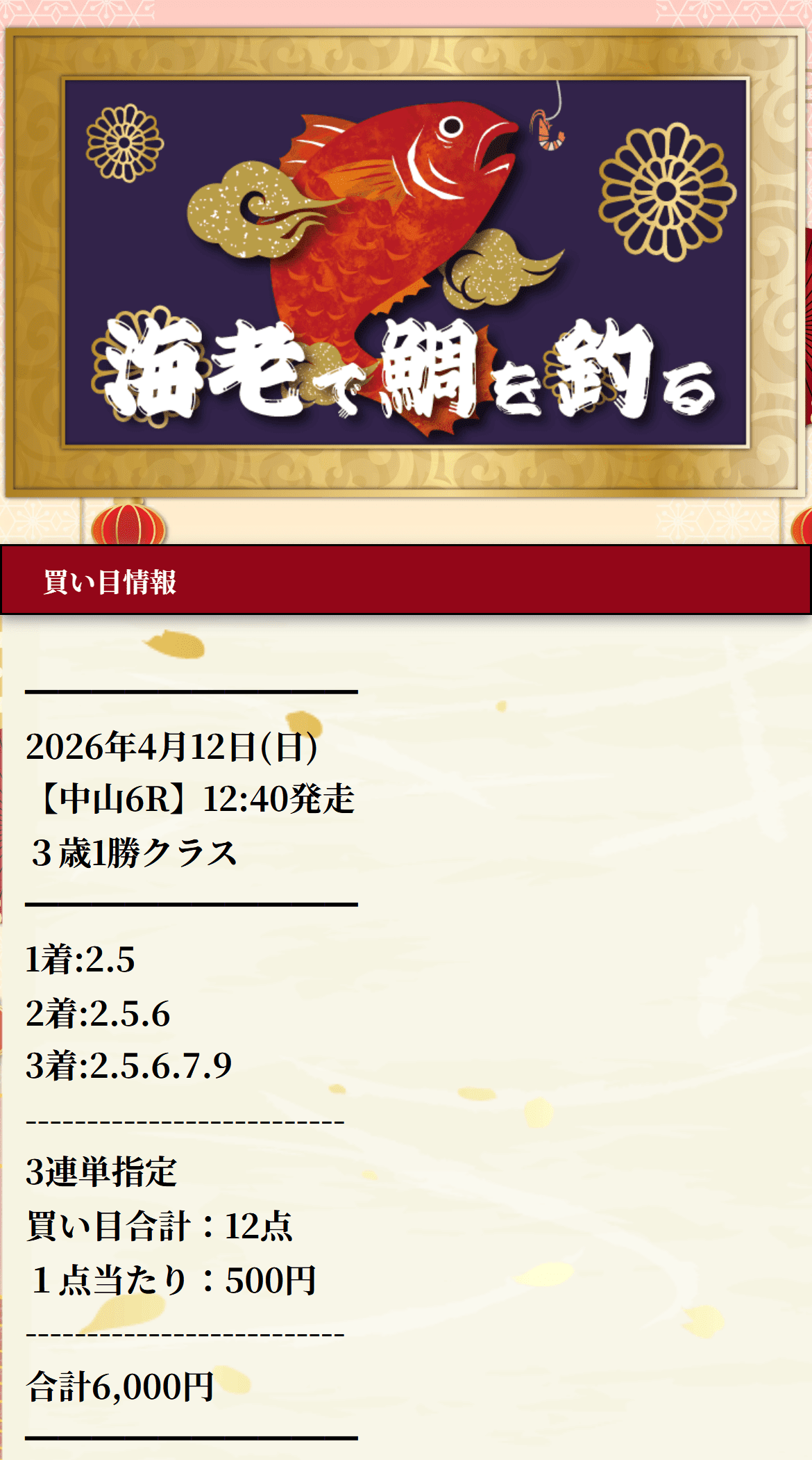 ガソリンもそうだし、日用品もそうだし、家計を預かってると節約だけで吸収するのがしんどい場面が本当に増えた。だから暁の海老で鯛を釣るみたいな当たり方は、数字以上にありがたいです。中山6Rで決まった三連単は781.2倍、配当額39万0600円。しかもただ堅く取ったんじゃなくて、5番人気→3番人気→7番人気で組み上がってるから、増え方に納得があるんですよね。「たまたま」じゃなく「ちゃんとおいしく取ってる」感じがして好きでした。