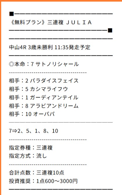 中山4Rは実は単複の無料予想も提供されていて