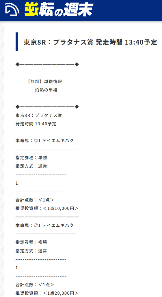 18日(土)の京都8Rは無料予想で馬連・馬単の2馬券種的中
