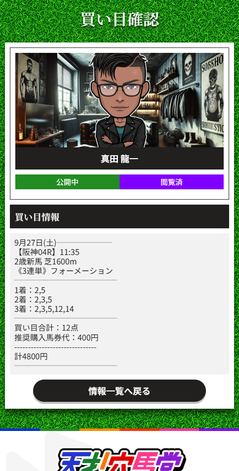 激PUSHしていた無料予想がこの天才!穴馬党でした!