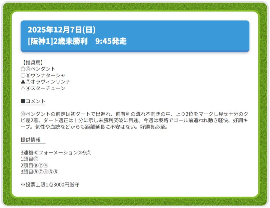 12月21日(日)の中山9Rで