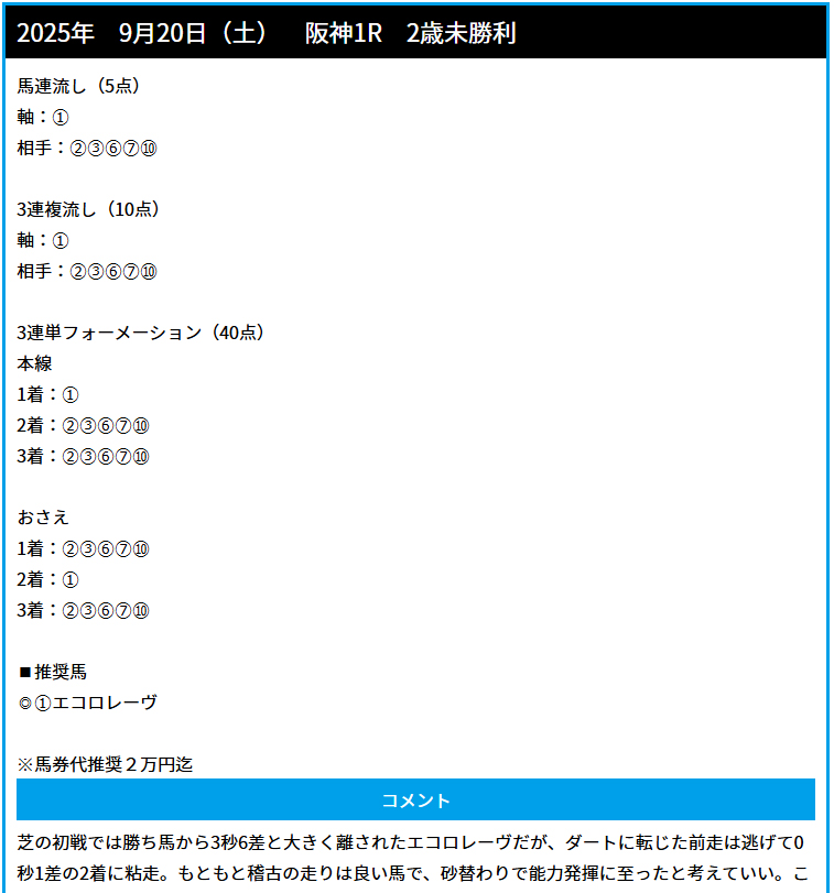 このレースが的中した解説も登録をして