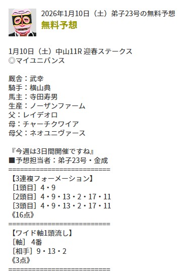 2026年も無料予想で順調に的中と貯金を殖やしています。